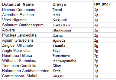 In Jeerna Amvat (Rheumatism/ Arthritis), Vatarakta (Gout), Sandhivata (Joint Pains), Muscle pains, Vataroga, etc.
