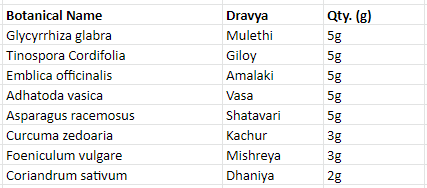 - Therapeutic Usage : Hyper Acidity, Burning Sensation, Effective In Pittvikar & Raktvikar, Maintains Healthy Digestive Acid Level & Healthy Stomach Lining, Skin Rashes Due To Hyper Acidity, Chronic Fever Of Pitt Type.