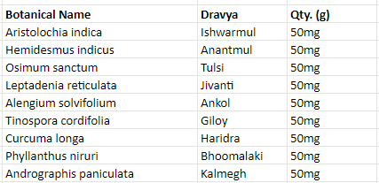 Therapeutic usage : All Viral Infections, Viral Diseases, Contagious Viral Diseases Like Flu, Common Cold, Hiv And Herpes, Respiratory Viral Infections, Dengue, Malaria, Chicken Pox, Corona Virudh Etc.